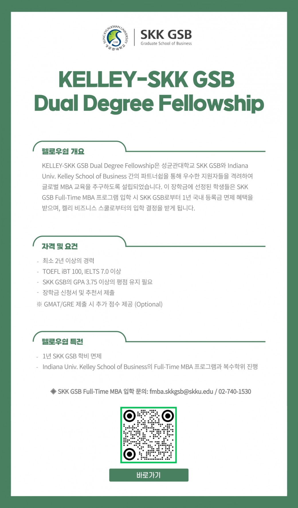 미국 명문 & 국내 MBA “Kelley – SKK GSB Dual Degree Fellowship 페이지 정보 작성자 리더스 댓글 0건 조회 13,610회 작성일 24-11-29 09:54 목록 본문 이전글12월 GMAT시험비 할인 이벤트 24.12.06 다음글1월 설연휴 및 수업일정 안내 24.11.28 댓글 0 댓글목록 등록된 댓글이 없습니다.