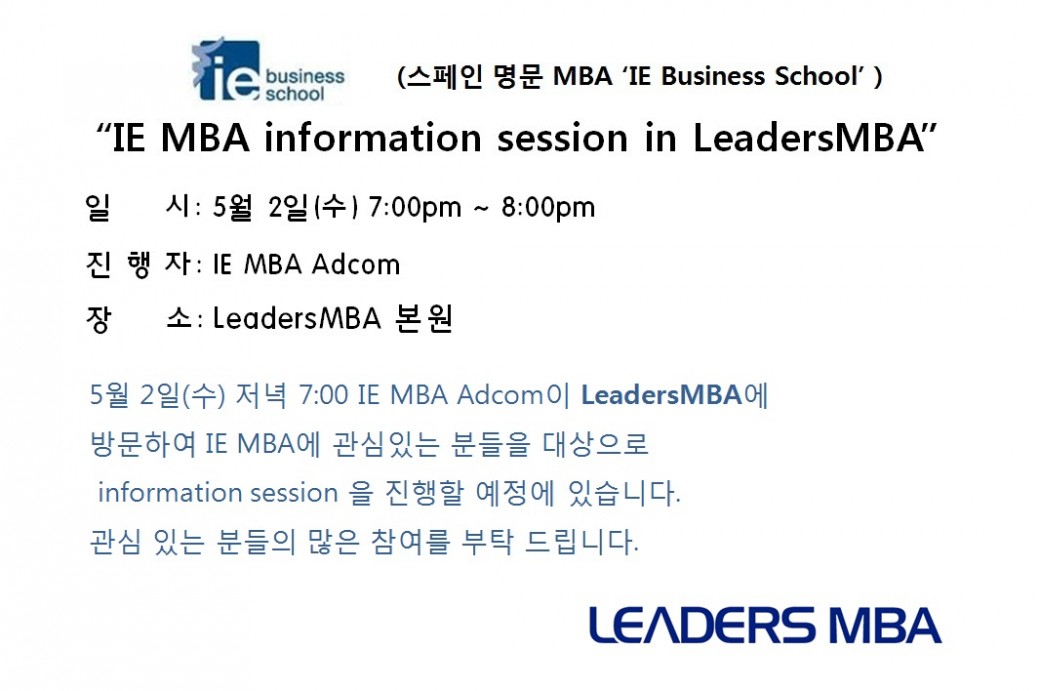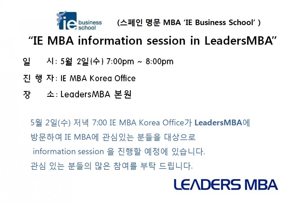 5월 2일(수) IE MBA information session 페이지 정보 작성자 리더스 댓글 0건 조회 12,005회 작성일 12-04-25 13:57 목록 본문 5월 2일(수) IE MBA information session 이전글★5월 AWA 1차(13일/일)+2차(14일/월) 특강★ 12.04.27 다음글5월 개강 및 일정 안내(공휴일 정상 수업) 12.04.22 댓글 0 댓글목록 등록된 댓글이 없습니다.