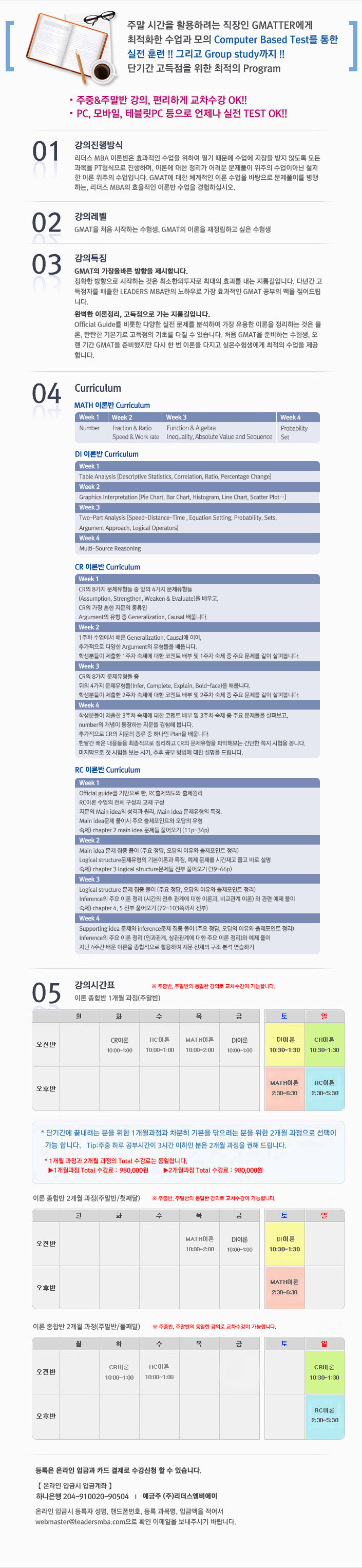 이론 종합반[주말/2개월과정] MATH+DI / CR+RC 요약정보 및 구매