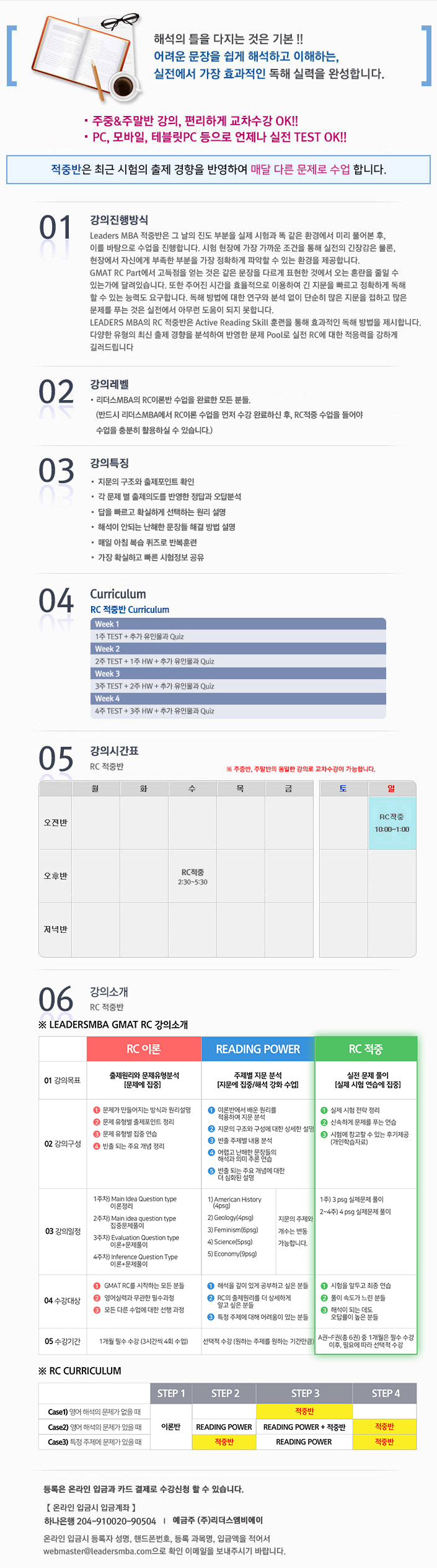 강의시간표 리더스MBA의 각 강의별 시간표 및 수강신청이 가능합니다.